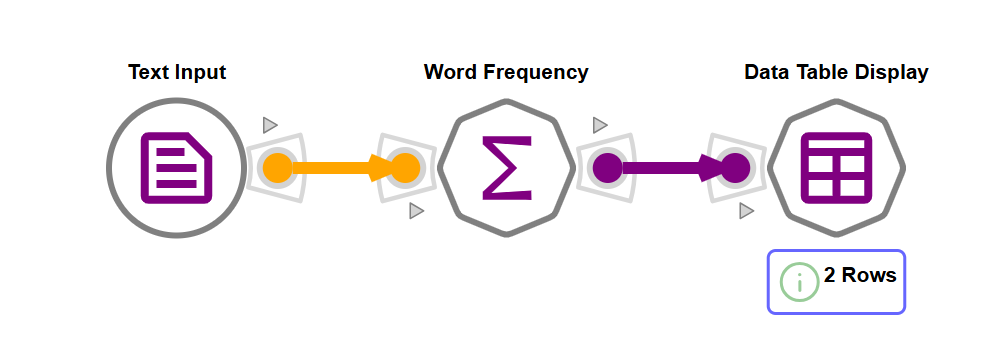 data_in, computes the frequencies of each word in the text and outputs this information in table form via output portdata_out.